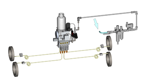 除其他外,“油氣系統(tǒng)”用于少量間歇性潤滑劑供應不足且需要持續(xù)向潤滑點供應微量潤滑劑的情況。例如,高速軸承就是這種情況。處理過的空氣用作傳輸介質(zhì)。